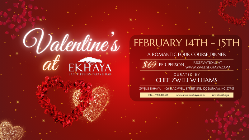 The award-winning Chef Zweli Williams introduces you to her culinary playground! Zweli's Ekhaya is the new elevated dining concept of our original concept Zweli's Kitchen (located at Brightleaf Square 905 W. Main St). Ekhaya is located in the heart of the American Tobacco Campus which sits in the heart of Downtown Durham. Ekhaya offers an eclectic array of flavors that caters to all five senses. The uniqueness of Ekhaya takes your palate on an excursion of fusions where Che Zweli is modernizing tribal dishes from nations throughout all of Africa. Welcome to Ekhaya, The Home!